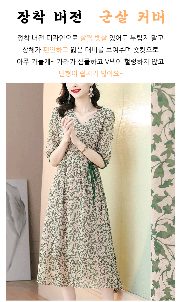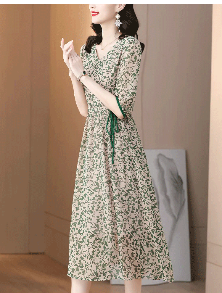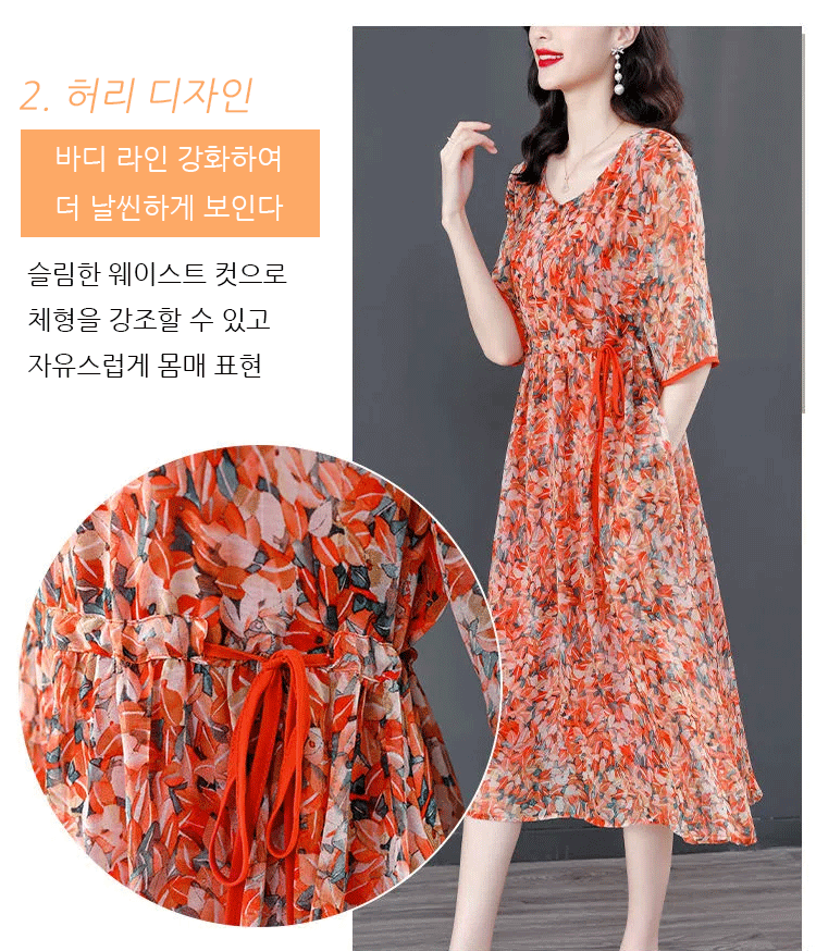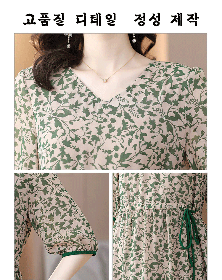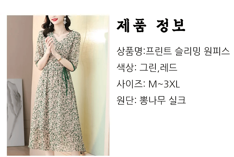 프린트 슬리밍 5부 소매 원피스