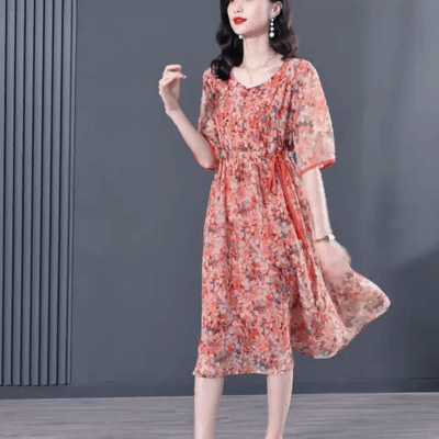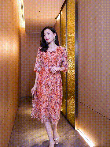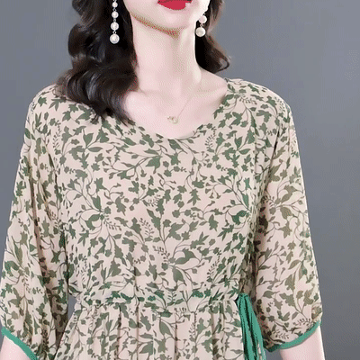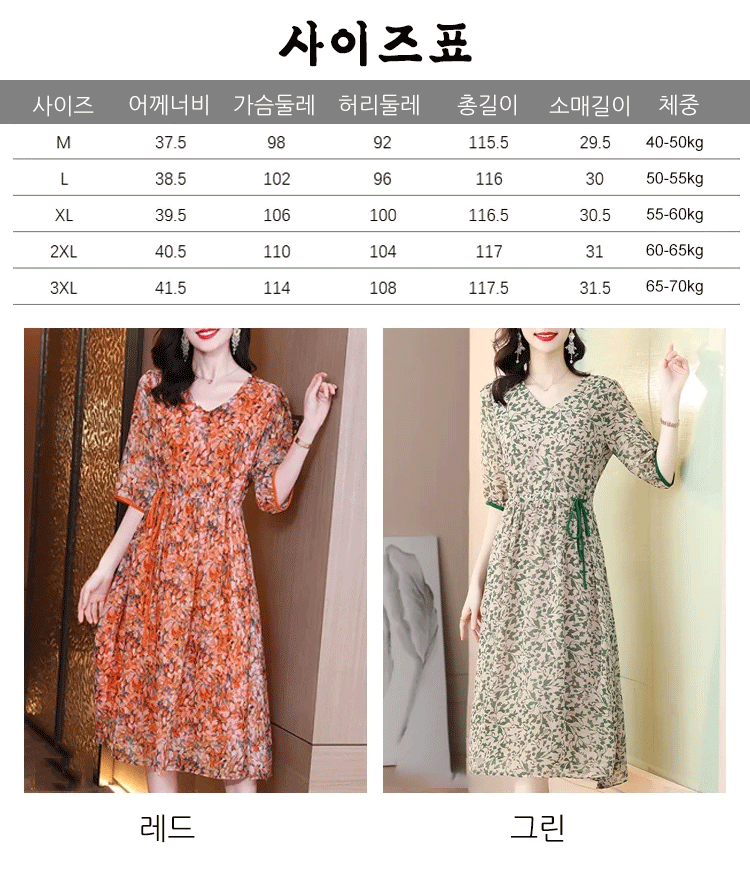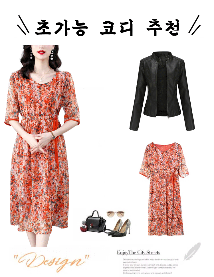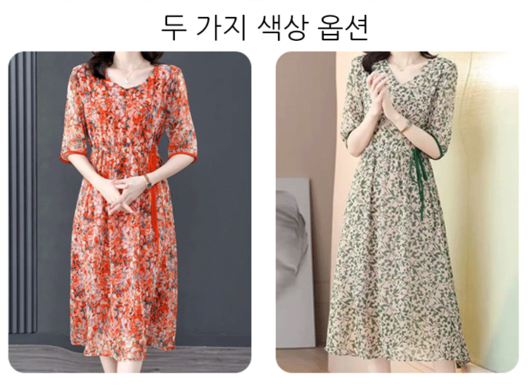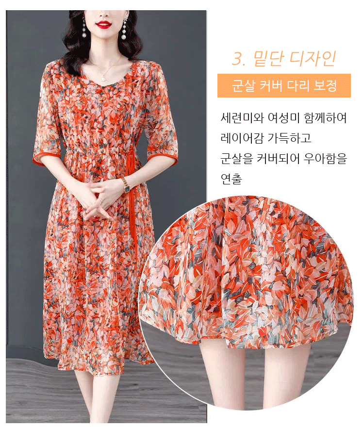 프린트 슬리밍 5부 소매 원피스