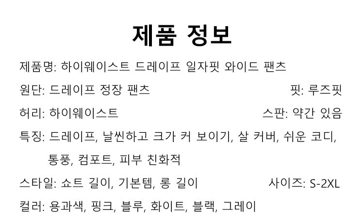 하이웨이스트 드레이프 일자핏 와이드 팬츠